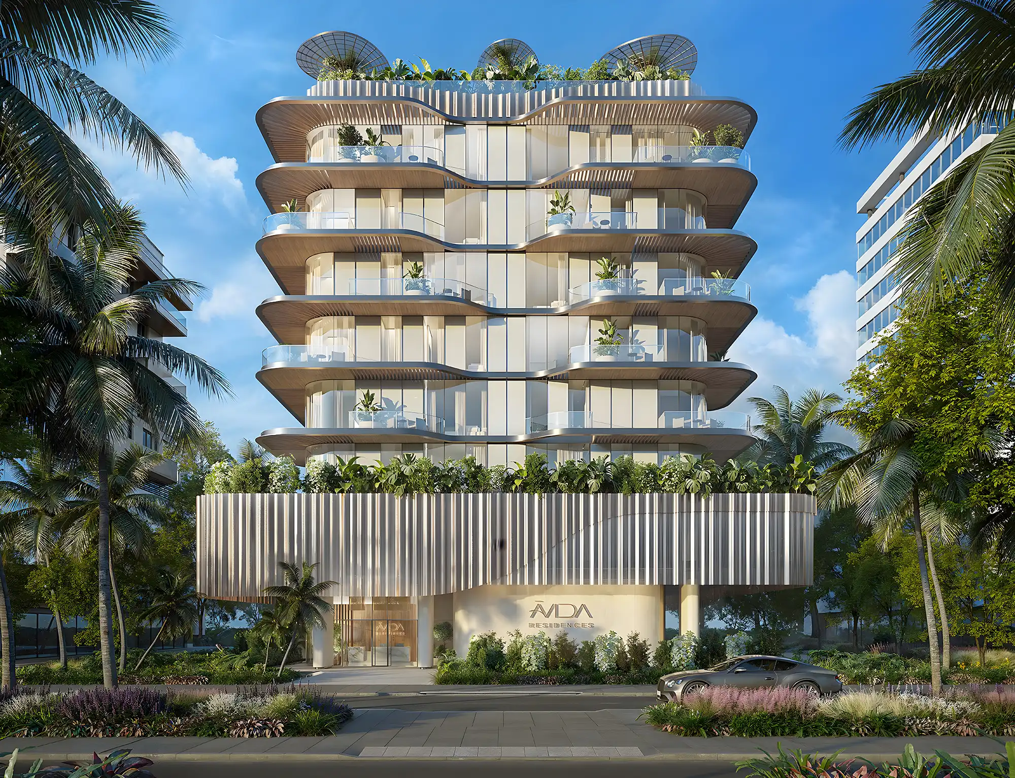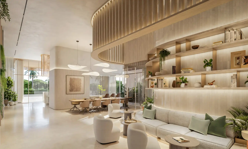 Avida Residences on Dubai Islands is a boutique wellness project by IQUNA Properties located next to Lagoon Crescent East Beach. It is a collaboration with Avida Longevity and Sneha Divias Atelier. The architecture is inspired by biophilic design: fluid lines, cascading greenery, wide terraces and panoramic glazing.