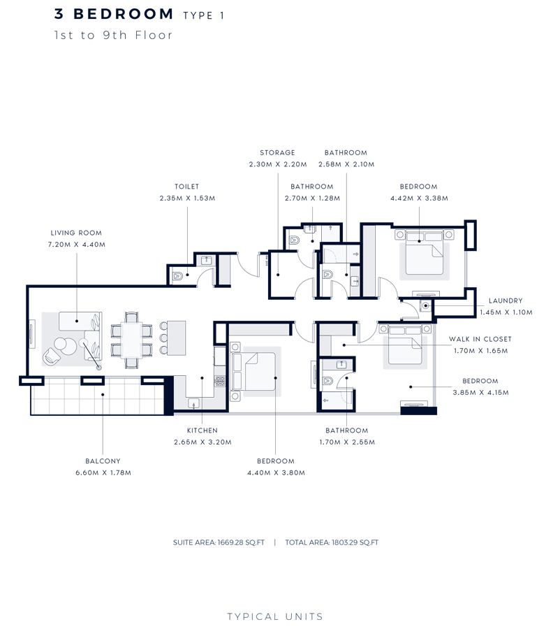 Category 1 Bedroom Floor Details Type 1 to Type 2 Sizes 767.15Sq Ft to 768.55 Sq Ft Type Apartment Category 2 Bedroom Floor Details Type 1 to Type 5 Sizes 1250.99Sq Ft to 1432.69 Sq Ft Type Apartment Category 3 Bedroom Floor Details Type 1 to Type 2 Sizes 1661.64Sq Ft to 1803.29 Sq Ft Type Apartment