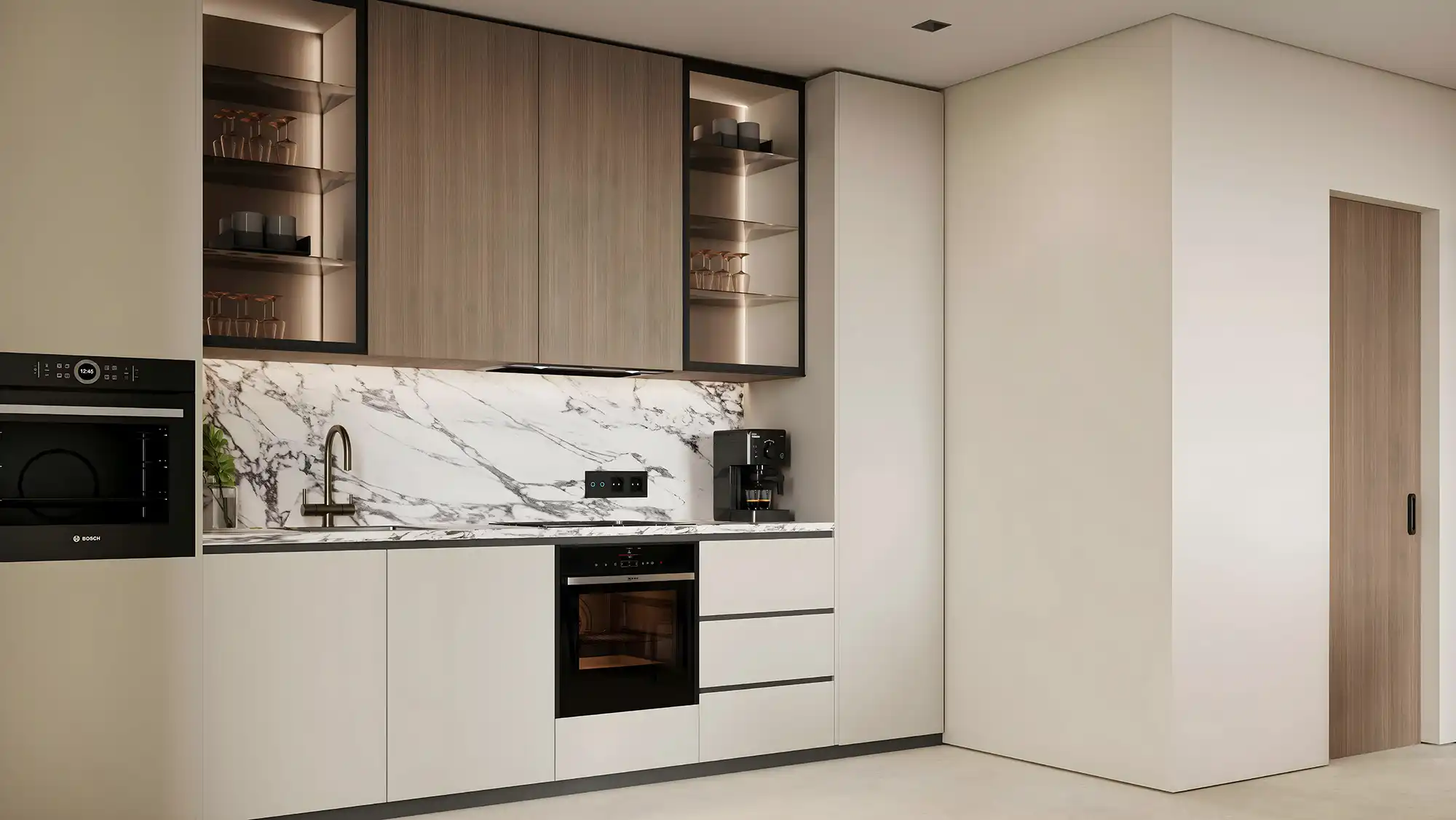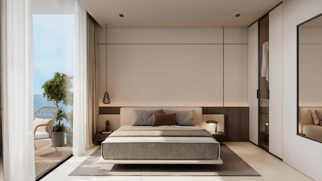 The residential spaces here include studios, enlarged Studio L studios, 1-bedroom apartments, including Plus options, and 2-bedroom apartments, including Plus versions. These residences range in size from 409 sqft (38 m²) to 1655 sqft (154 m²). The apartments have private balconies with beautiful views, and the finishes are in a light palette with marine accents.