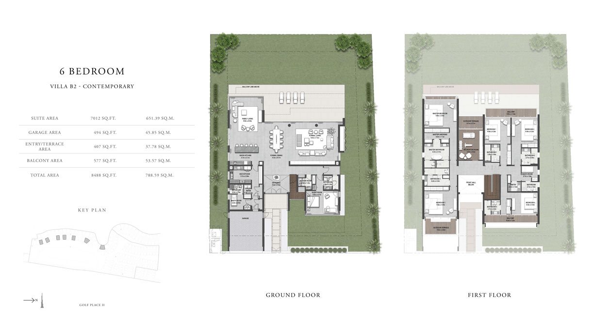 Floor Details 6-Bedroom, Villa-B2, Size-8488-Sq.Ft to6-Bedroom, Villa-B3, Size-9991-Sq.Ft